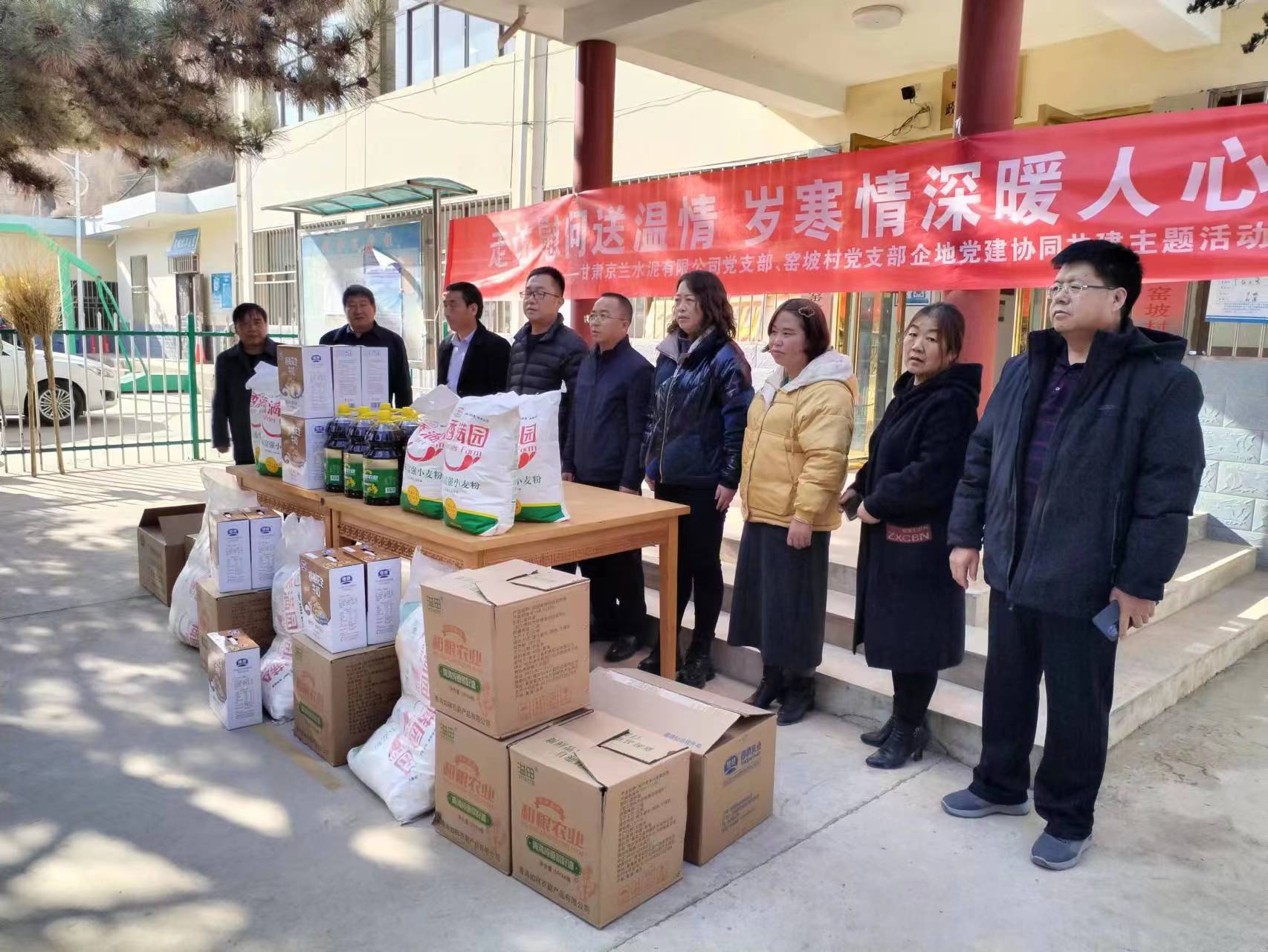 歲寒情更濃,牽掛暖人心。在春節(jié)來(lái)臨之際,甘肅京蘭水泥有限公司黨支部在企業(yè)所在地小康營(yíng)鄉(xiāng)、新?tīng)I(yíng)鎮(zhèn)、高崖鎮(zhèn)開(kāi)展了“送溫暖,獻(xiàn)愛(ài)心,企業(yè)在行動(dòng)”村企聯(lián)建活動(dòng),主要對(duì)涉企鄉(xiāng)鎮(zhèn)的老年人、困難家庭及罹患重病人員進(jìn)行了慰問(wèn)。此次活動(dòng)累計(jì)慰問(wèn)困難群眾122人(戶),發(fā)放面粉(10kg)122袋、食用油(5kg)122桶、純牛奶122箱、重病人員500元現(xiàn)金/人。